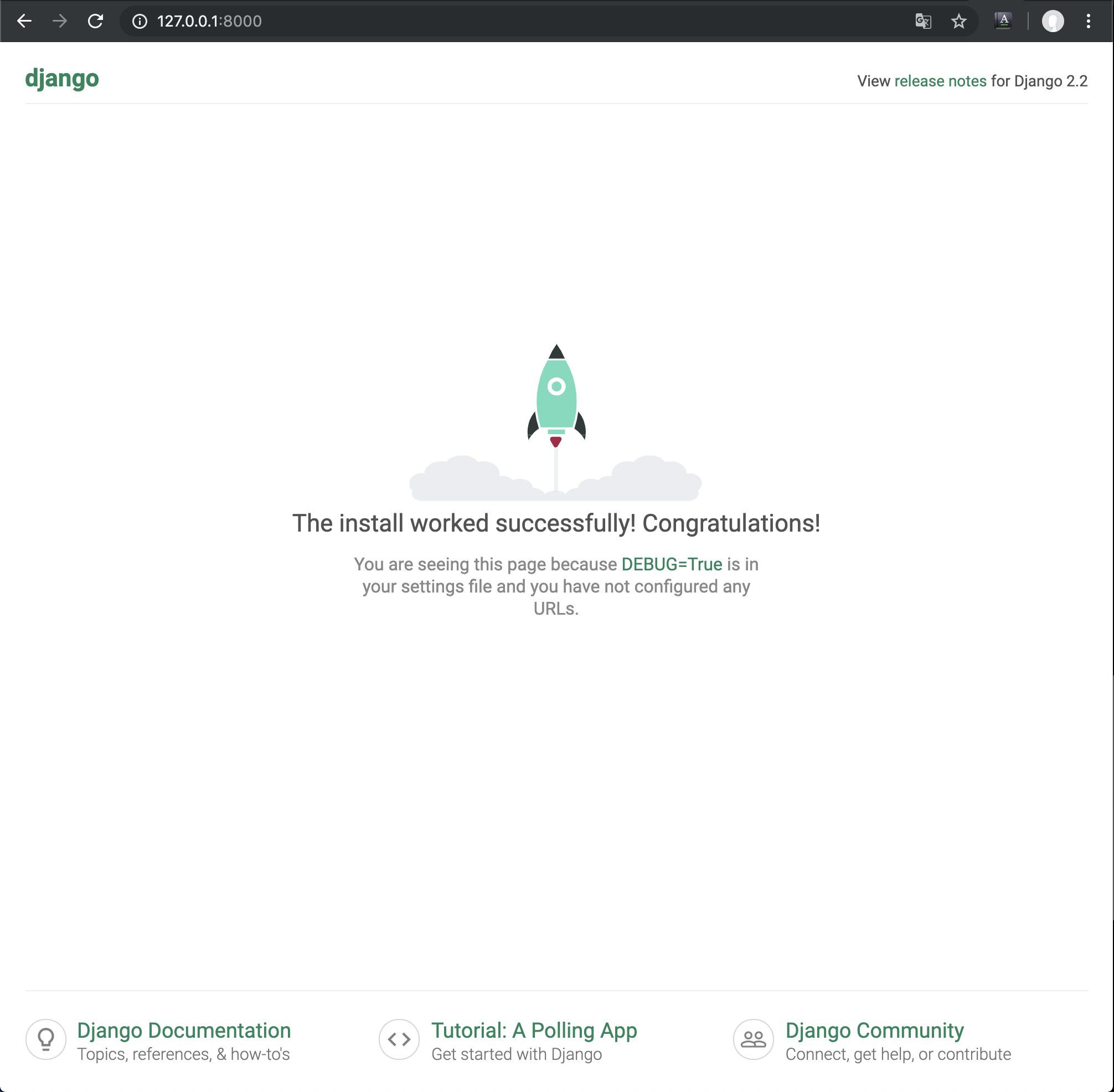 제대로 서버가 생성되었다면 http://127.0.0.1:8000/ 에 접속하시면